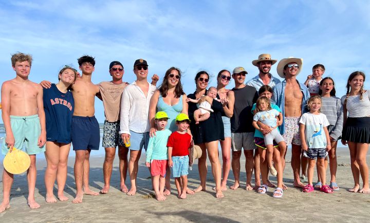 Mary Ann grew up in a large family on a ranch so being outdoors is built-in to the family's DNA. Now that most of her siblings are married with families of their own it is an extra big group and never dull. When we are all together there is endless activity be it from non-stop cooking to tag football, basketball, foursquare, soccer, horseback riding, group runs — honestly the list is endless. We joke that getting together with Mary Ann's family is like an "instant summer camp" and the family motto is "The More the Merrier" so everyone is really excited to add another itty-bitty to our ever-growing crew.