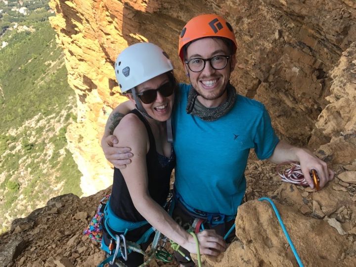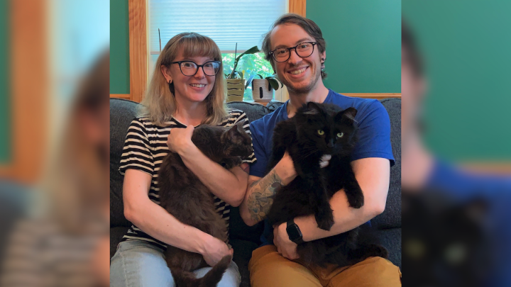 In our leisure time we love to rock climb, hike, and travel. We often plan our vacations around beautiful international and national climbing destinations (Spain and Hawaii are next on our list for climbing!). We enjoy playing board games, like Scrabble and Ticket to Ride, with family and friends and hosting movie nights. We like going to concerts and trying new restaurants. Tracy loves reading (especially sci-fi and mysteries), photography and playing music with friends. Spencer enjoys baking and making food for friends and coworkers. We absolutely love playing football and tennis with our nephews and spending time storytelling and laughing with family. We’re also passionate about supporting and volunteering at animal shelters, especially the two we adopted our cats through.
