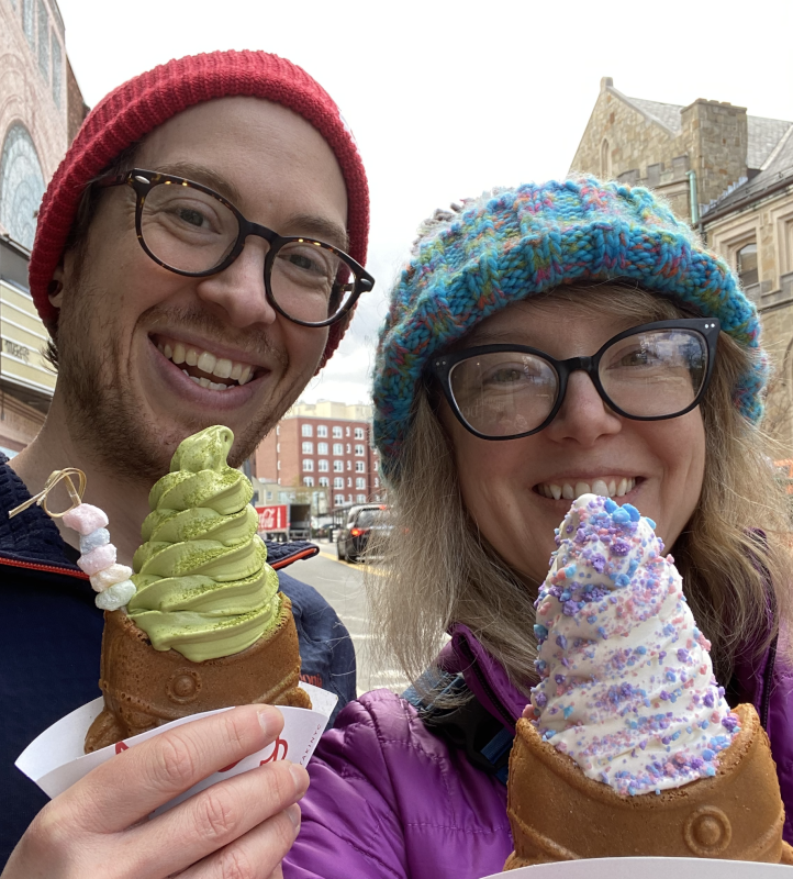 We’ve been together for 8 years and have been married for 6 of those years. We met on an online dating site and immediately connected over our love for books, movies, music, nature, traveling, science, nerdy art, and video and board games. We quickly learned that we share the same values like family, community, communication and personal growth. Our relationship is full of love and laughter. There are so many things we love doing with family and friends, like hosting movie and game nights, hosting dinners, playing football with the nephews, and going on vacations together. Tracy is a drummer and loves playing music with friends and family. Sometimes she even plays shows with her parents’ classic rock cover band. Spencer loves playing tennis and video games, like Pokemon, with his brother and nephews, and cooking with family and friends. We also love attending concerts, hiking nearby nature trails, rock climbing at our local climbing gym and in outdoor parks near us, traveling (Spain and New Zealand are next on our list!), trying new restaurants or staying home and trying new recipes. Sharing new experiences together and with family and friends brings so much joy to our lives. It strengthens our bond with each other and with our community. We’re also passionate about supporting animal shelters and have two amazing adopted cats (Squid and Vincent) who are great with people, love to cuddle and make us laugh every day.
