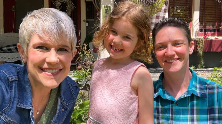 We are a married lesbian couple and have been together for over 10 years and married for 7. We met on Xbox Live while playing Halo, which is something that we still enjoy doing today. We talked, on most nights, for a year, before we met in person. Throughout that year, we ended up becoming best friends and then, eventually, the married couple you see today. Our relationship is full of love and laughter. We have one daughter, Mia. She is an outgoing, sweet and compassionate kid. She would love nothing more than to become a big sister.