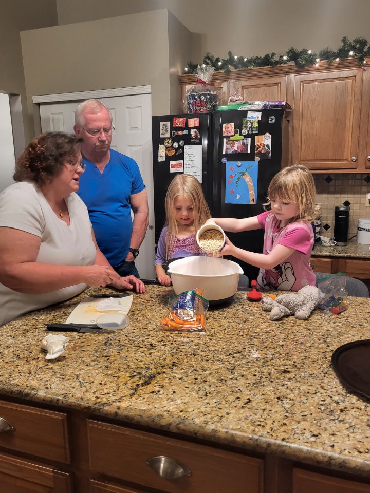 Both of our immediate families live within 30 minutes of our home, so we get plenty of grandparent, aunt (Aunt Yaya), uncle (Uncle Daniel), and cousin (Maelynn) time! Usually when our family is together, it's spent playing games, at trivia nights, spending time outside, swimming at Grandma and Grandpa's house (Dan's mom and step-dad) or vacations together. Our daughter and niece love having cousin sleepovers at Mimi and Pop's (Rachel's parents) house.