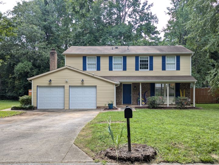 We live in a suburban area in North Carolina. Our neighborhood is peaceful and pretty diverse. Megan's favorite features about the neighborhood are how it has lots of trees and how it's located close to a park. We go to the park frequently and it has a nice walking trail and connects to a nearby greenway. Lots of people take walks in the evening and the neighbors are friendly and always say hello. There are kids who are elementary age and many go to the local school.
