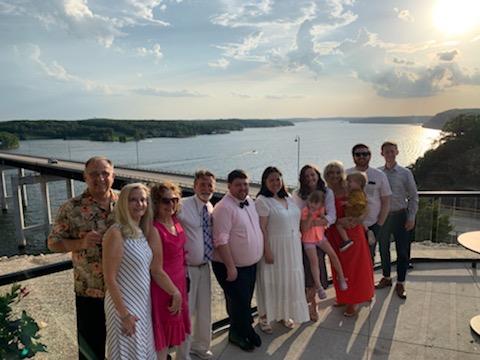 Ben grew up in Columbia, MO and Becca grew up in St. Louis, MO. Ben has two brothers, one younger and one older. Both of Ben's siblings are married, and his older brother has 2 kids. Ben's parents live at the lake of the Ozarks, and we all go down to the lake and play board games, go fishing, ride on the family boat and barbecue at the dock.