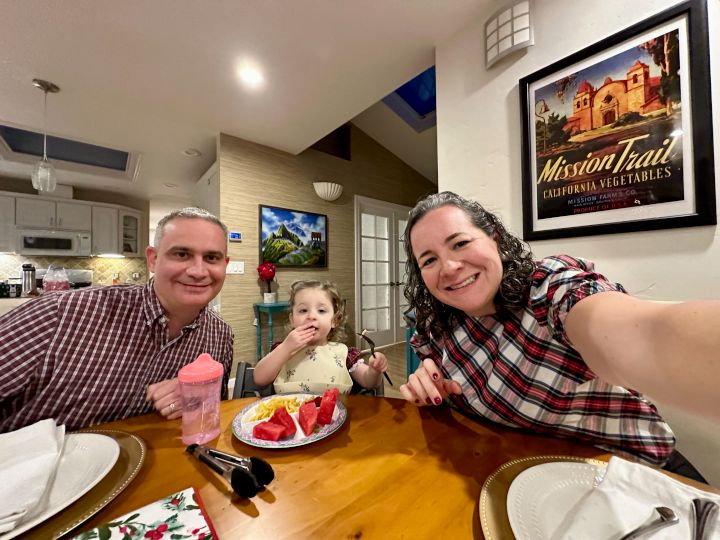 On a daily basis, we prioritize family dinner time. We cook dinner at least 5 nights a week together and then make sure to sit down and eat dinner together as a family. During this time, we talk about our days- both the joys and challenges of what happened. We ask Clara about her day and although she doesn't yet provide many answers, we look forward to when she can talk more. This time allows us to support and celebrate one another, and also to have open communication.