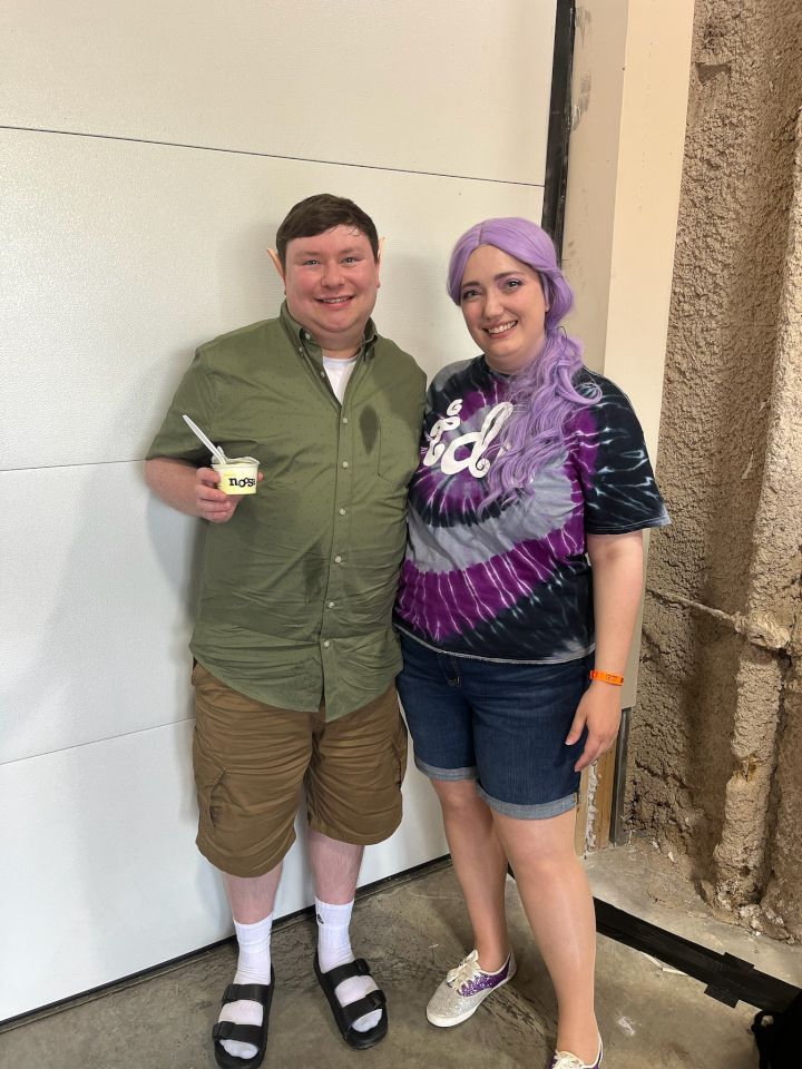 For our hobbies, Kimberly loves to draw, sing, and crochet. Adam likes to collect rocks and minerals, go bird watching, collect vintage Pokémon cards, and care for his indoor plants. In our leisure time together, we like to play Nintendo Switch video games, and we love playing strategy board games with our friends and family. We often host board game nights at our house. We also like to play Dungeons & Dragons (D&D) with our siblings virtually, as well as watch D&D campaigns that are streamed online. When the weather is nice we take walks outside, and we like to play pickleball. Adam also enjoys going golfing, and playing table tennis. In general, we mostly watch feel-good and animated movies and comedy shows. We are definitely Disney fans. Whenever possible, we will happily take a trip to Disneyland or Disney World. We sing along to Disney soundtracks in the car, and we keep up with the latest movies. We like to attend musicals at the local theater, and we also enjoy going to see improv comedy shows. When the local comic con is going on, we attend dressed-up in costumes as our favorite characters.