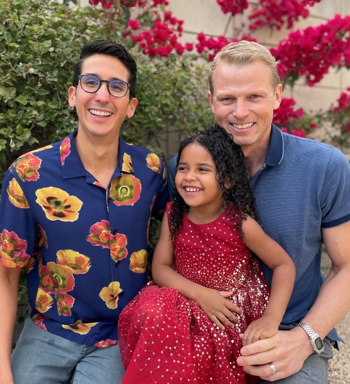 We love spending time with our family! Luis' mom Luz visits several times per year and really enjoys her granddaughter Sky. She speaks in Spanish which helps Sky and Mike learn the language. A favorite spot of theirs is Disneyland a short drive away. Mike's sister Kelly and her husband also live nearby and we always spend July 4 holidays with them. We go on bike rides together - even Sky! - play with their cat, build sand castles at the beach, and swim in the waves. They stay at our house when there is a birthday party, which is often since Mike's 3 step-siblings all live in town and have kids Sky's age. Luis' two brothers (a flight away) also have young kids and Sky loves seeing her cousins. We usually do either a summer or a Christmas trip all together, and some of the best activities have included hikes, riding horses, and walking their dogs.