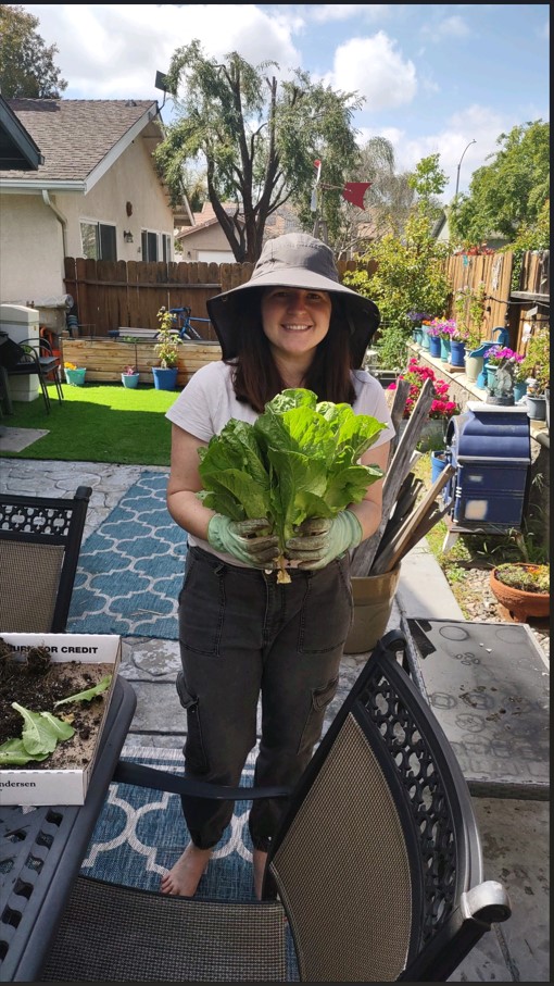 Our yard is filled with flowers, vegetable garden boxes, and windmills that Kyle has made in his wood shop. We are avid gardeners.