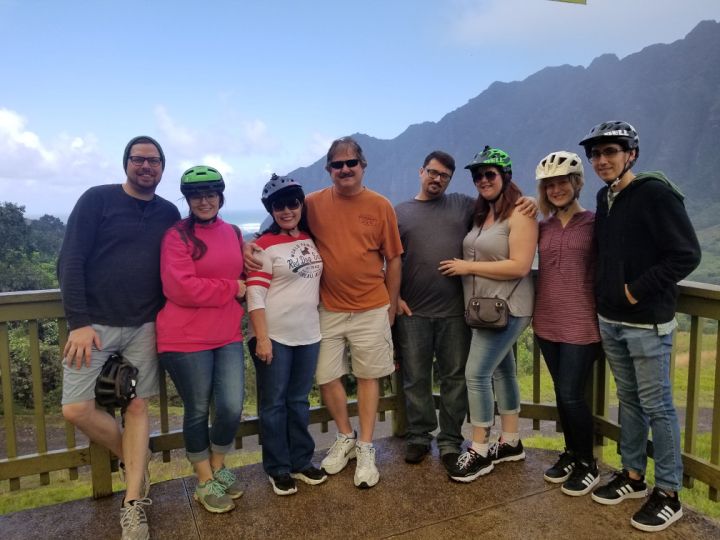 Chyree's parents, Kevin and Glenda (step-mother), and Cynthia, both live in town and are a big part of our lives. Cynthia is a crafter and all around DIYer. She and Chyree are always doing some craft, baking, gardening, or building something together and usually enlist Chyree's nephews when they are in town. Chyree has four siblings. Two sisters, Chelsea and Ashley, live in town; Chantelle lives in Fairfield with her husband and their two sons; and her brother, Travis, lives about 40 minutes away. Our last big family vacation with Chyree's dad and siblings was in Oahu, HI. We toured the places where they filmed Jurassic Park and were visited by a giant tortoise on the beach!