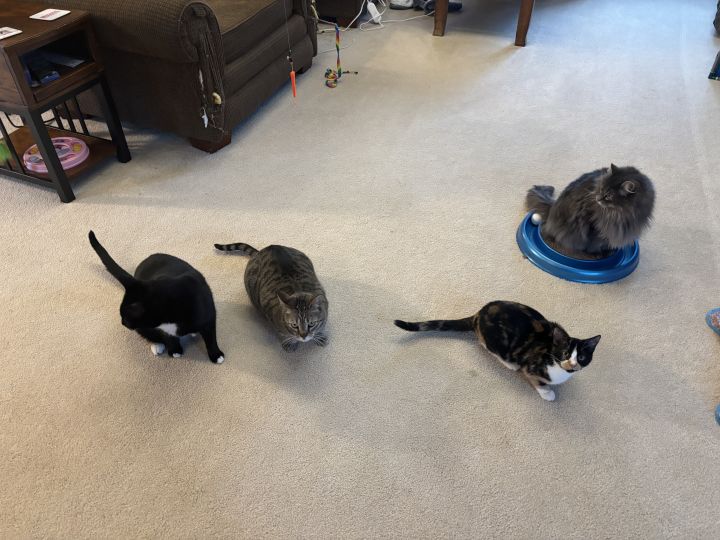 Ozzie (3 years old) is our dapper tuxedo cat—always dressed for the occasion. He’s the king of relaxation, often found snoozing in a cozy spot. Ozzie is also our little singer. Serenading us daily with his charming "meow-sicals."Peanut (3 years old) is our spunky Bengal with boundless energy. She could easily qualify for the Kitty Olympics with her lightning-fast sprints around the house. She loves to chase her siblings but always makes time for snuggles and pets once she’s tuckered out. Arya (1 year old) is our adventurous little calico. A fearless explorer, she scales curtains and perches on the highest spots she can find. With the loudest, happiest purr, she adores being around people and curling up in a warm lap for a nap.