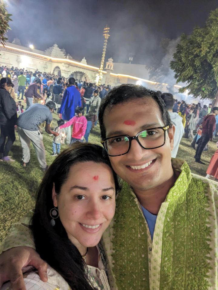 We are from vastly different cultural backgrounds. We both respect each other’s cultural heritage and have established routines and traditions celebrating elements of both our heritage. Our unique “Americanized Indian” or “Indianized American” life-style blends and some-times puts a new spin on our traditions. We have our own unique and somewhat eclectic set of traditions and excitedly look forward to including our child in these traditions and create new ones. Christmas and Thanksgiving are very important to us. We make sure to spend these holidays with our friends and families. Sometimes we travel to see my extended family in other parts of the country during Thanksgiving. If we don’t travel, Stacie invites over her friends. For Christmas, Stacie loves to prepare a feast. She spends several days preparing for Christmas dinner and makes sure to cook some delicious vegetarian main dish for me since Pratik doesn't eat meat. To complement her meal, Pratik makes some Indian side-dish. So, the Christmas day meals turn out to be eclectic mix of different cuisines. Diwali – the Hindu new year, is the major Hindu holiday we celebrate. For the five days of the festival, Stacie lights up the house with candles or “diyas.” We dress up in traditional clothes and perform a symbolic ritual or “puja” on one day and then on New Year’s Day we go to the local Hindu temple to partake in festivities.