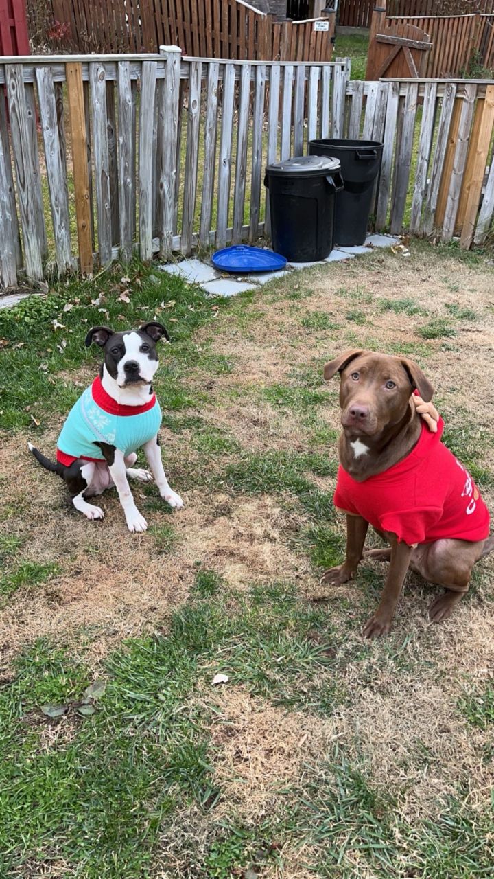 In February of 2021, we thought it would be a perfect idea to find Bonnie a sibling. While we had a specific dog in mind, there were already many inquiries but the shelter told us there was a dog that didn't have any and was a brother of one of the dogs we were interested in. We went to the shelter to pickup Bennett. Bennett is very lovable, goofy and loves to play all the time. He keeps Bonnie on her toes but he also loves to cuddle with her. They are a perfect pair together and we love them very much.