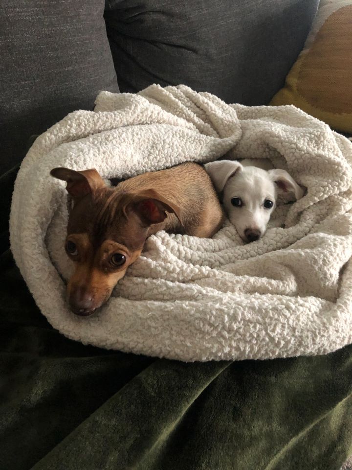 Our dogs, Leo and Lila, are an important part of our everyday life. They are not always allowed, but they love sneaking onto the bed to sleep with us. Leo, who we adopted in Costa Mesa, has a big underbite and won our hearts when he calmed down instantly in Sara's arms at the rescue center. Lila was rescued from Mexico and has shown such bravery since joining our family. She loves exploring the yard and gently catching lizards before letting them wriggle free. They bring us endless laughter and warmth.