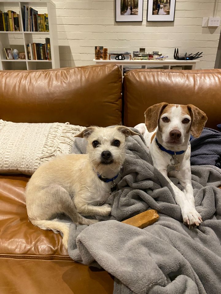Henry is a 15-year-old beagle who's mostly deaf now, but he still has plenty of energy and curiosity. He's independent and stubborn in the best way and always doing his own thing, but never too far from the action. Ferguson is our 8-year-old terrier mix and Henry's total opposite. He wants to be with you all the time, ideally in your lap. He's affectionate, loyal, and never misses a chance to curl up next to someone.